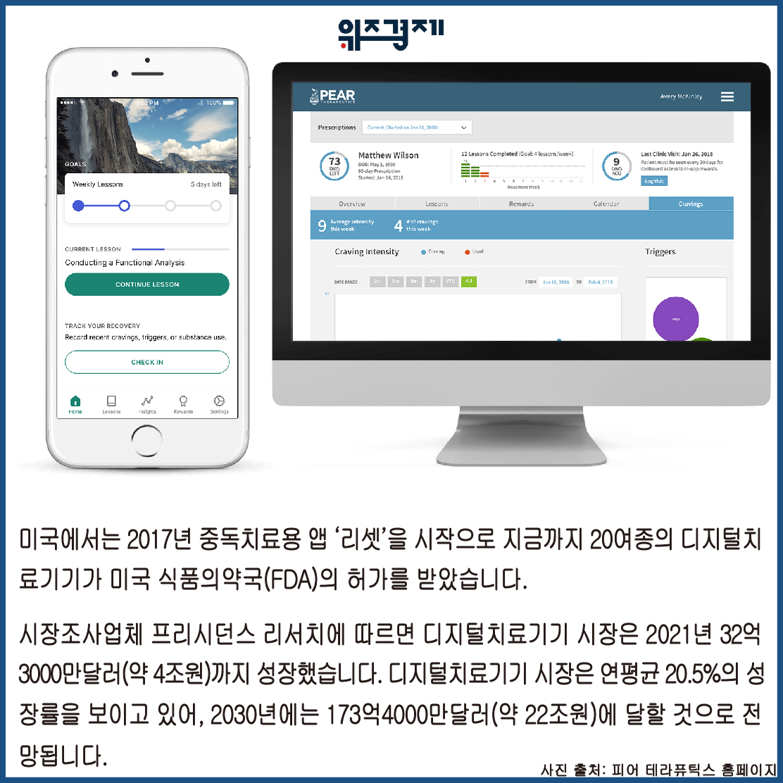 미국에서는 2017년 중독치료용 앱 ‘리셋’을 시작으로 지금까지 20여종의