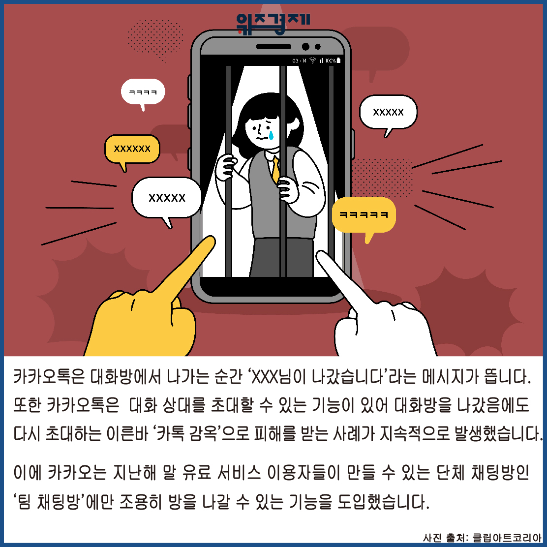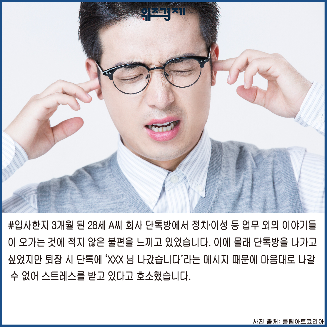 [위즈경제] 이정원 기자 =#입사한지 3개월 된 28세 A씨 회사 단톡방에서 정치∙이성 등 업무 외의 이야기들이 오가는 것에 적지 않은 불편을 느끼고 있었습니다. 이에 몰래 단톡방을 나가고 싶었지만 퇴장 시 단톡에 ‘XXX님 나갔습니다’라는 메시지 때문에 마음대로 나갈 수 없어 스트레스를 받고 있다고 호소했습니다.