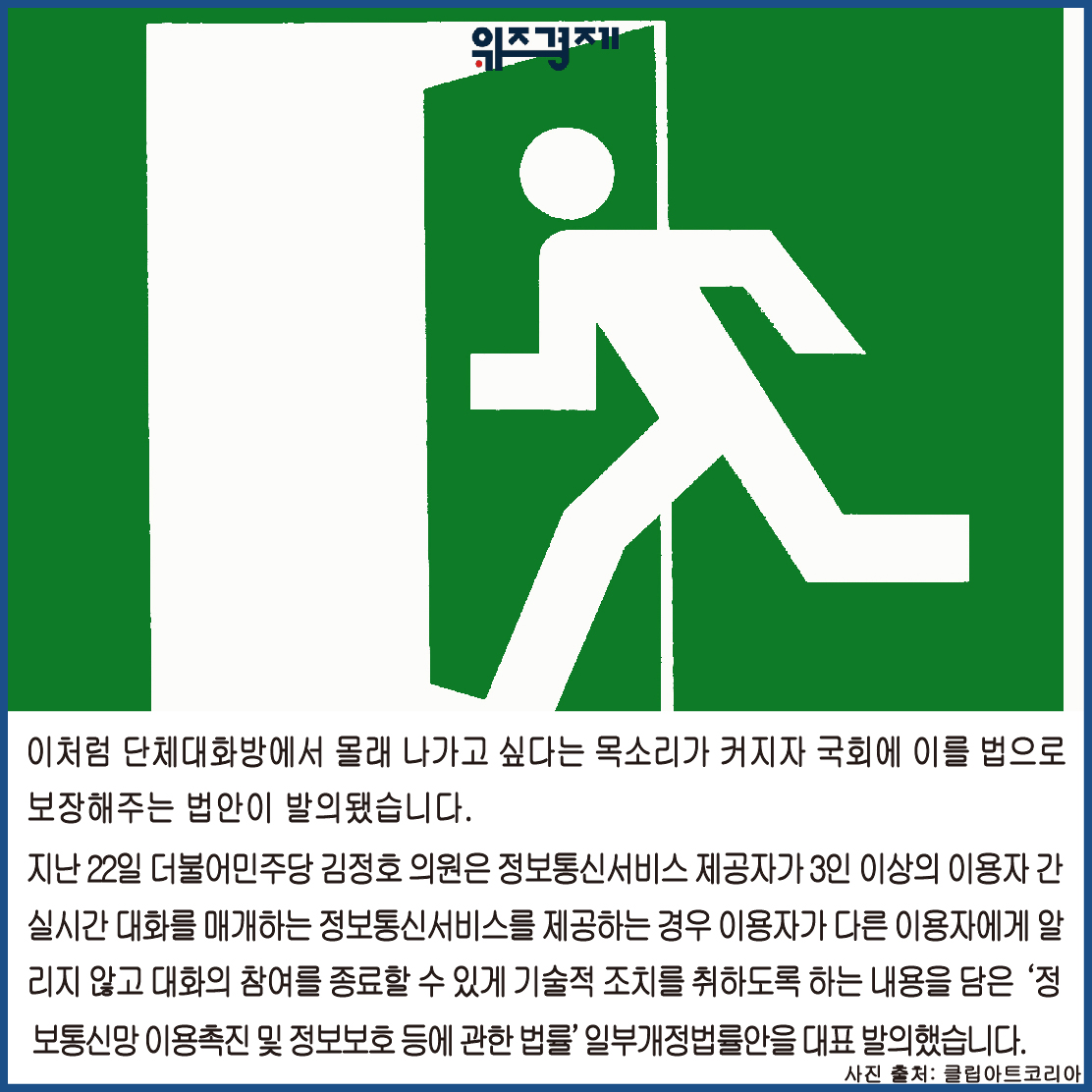 본사를 둔 왓츠앱 등 해외 메신저앱은 모든 그룹채팅방에서 조용히 나가는 기능이 도입돼 있다”고 설명했습니다.