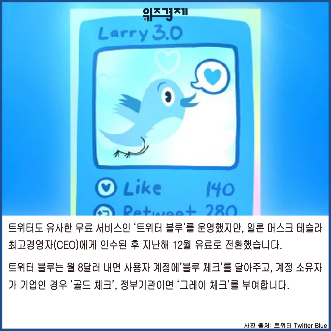 트위터도 유사한 무료 서비스인 ‘트위터 블루’를 운영했지만, 일론 머스크 테슬라 최고경영자(CEO)에게 인수된 후 지난해 12월 유료로 전환했습니다.
