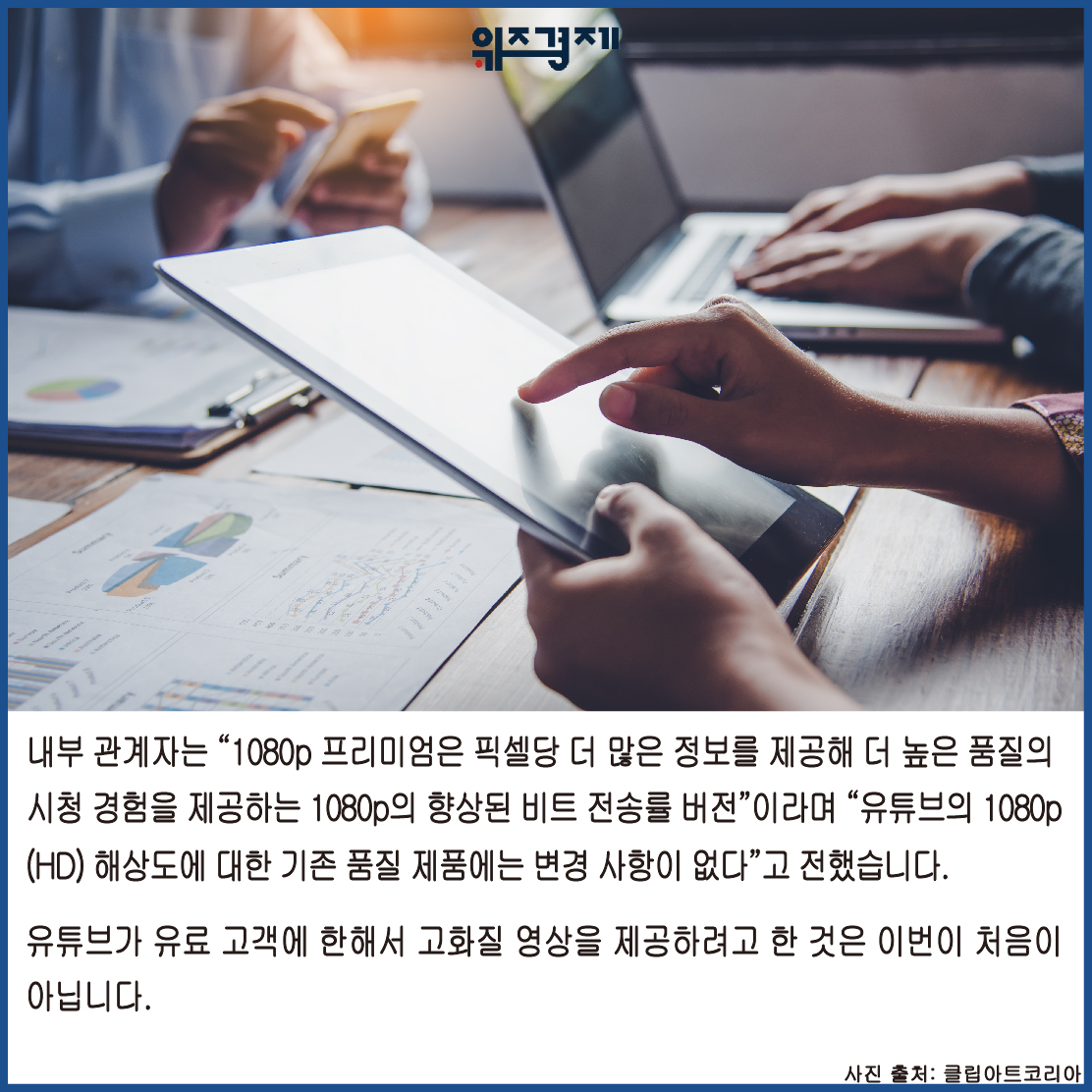 [위즈경제] 이정원 기자 =최근 유튜브 이용자들 사이에서 최고 영상 화질인 1080p 보다 높은 ‘1080p 프리미엄’이 발견돼 관심을 모으고 있습니다. 이에 유튜브가 지난해 고배를 마셨던 고화질 영상 유료화에 다시금 나서는 것이 아니냐는 관측이 나오고 있습니다.