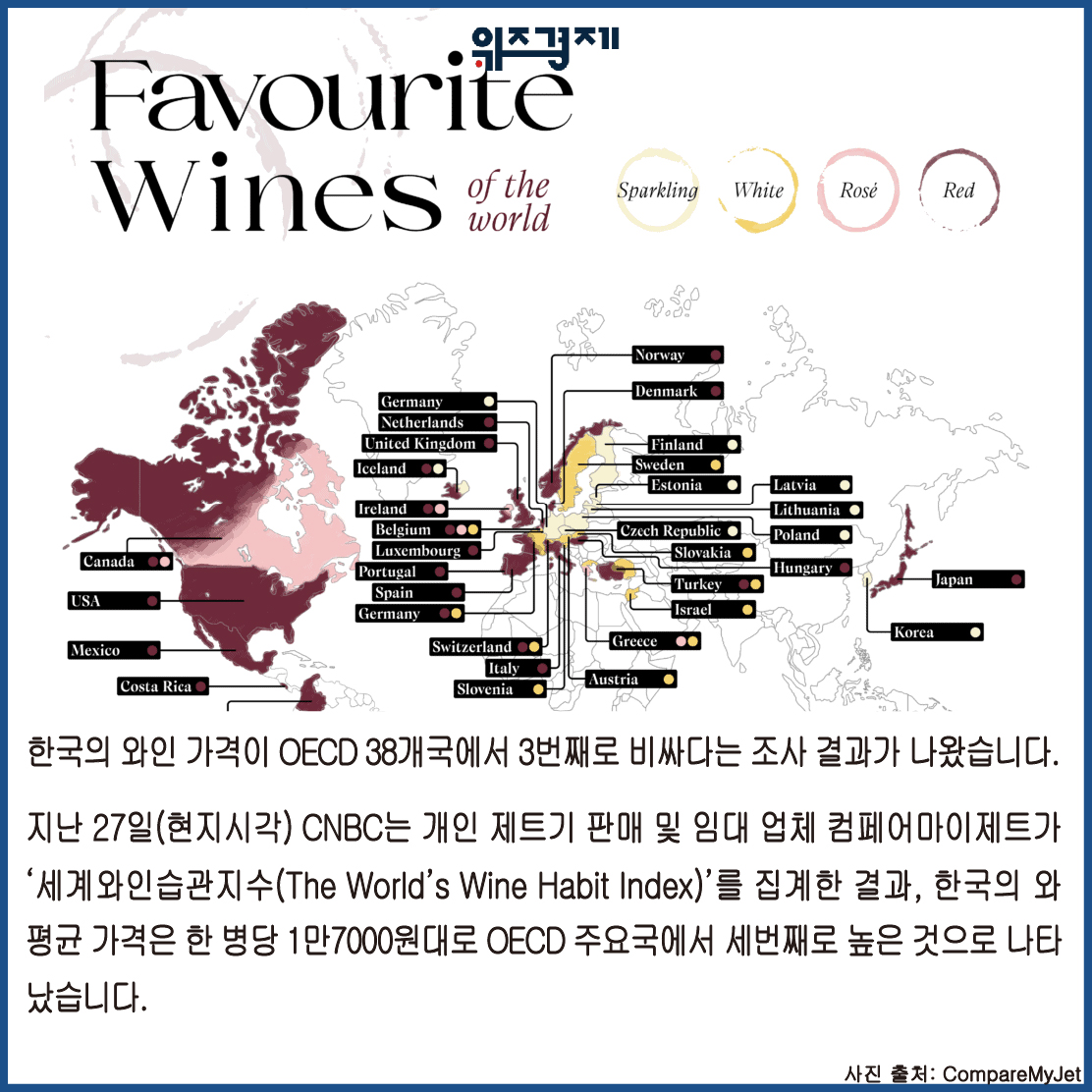 [위즈경제] 이정원 기자 =한국의 와인 가격이 OECD 38개국에서 3번째로 비싸다는 조사 결과가 나왔습니다.