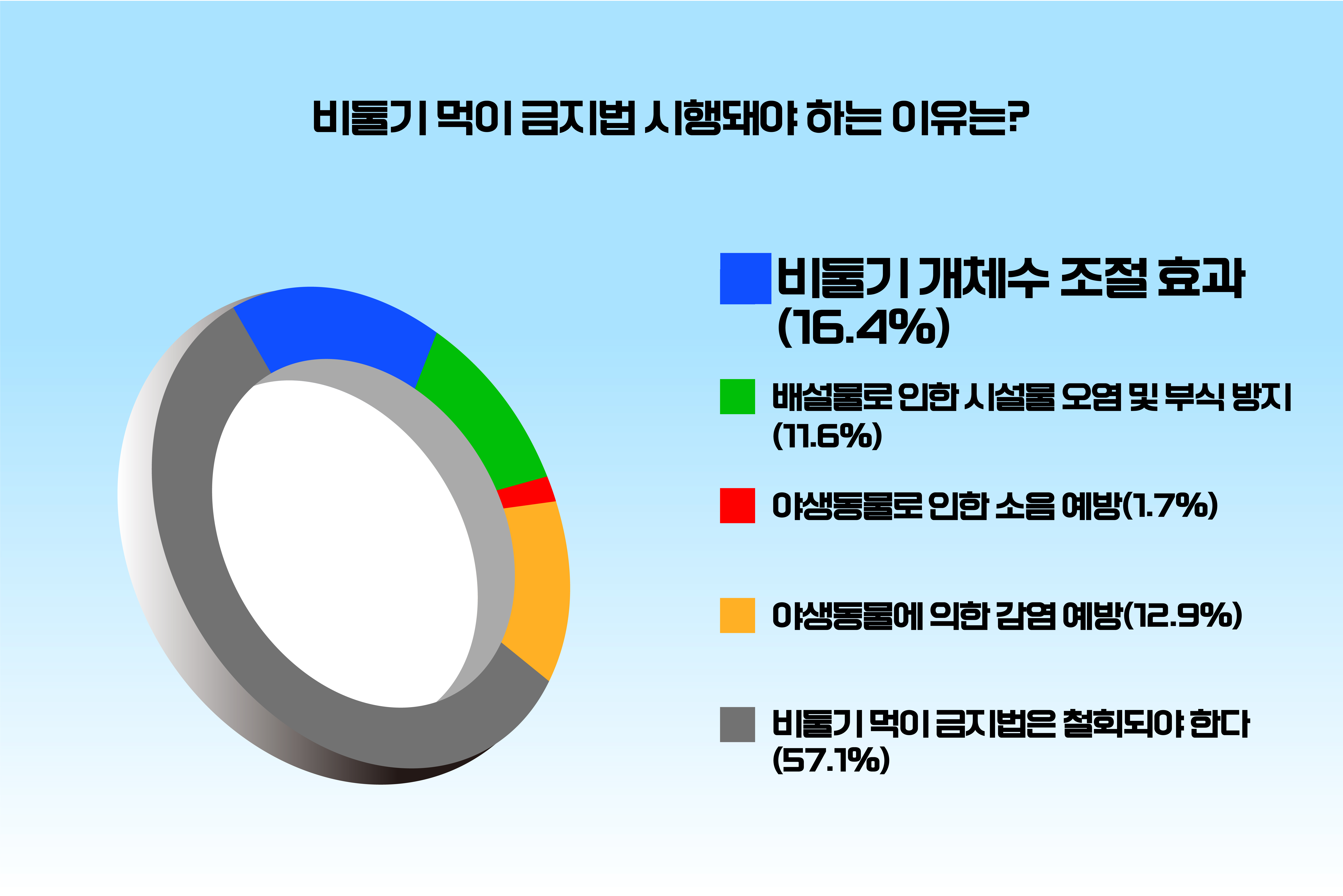 이어 배설물로 인한 시설물 오염 및 부식 방지’ 11.6%, ‘야생동물에 의한 감염 예방’ 12.9%, ‘야생동물로 인한 소음 예방 1.7%’ 순이었다.