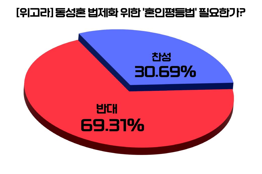 [위포트] 동성혼 법제화 내용 담은 ‘혼인평등법’ 69.31%, “반대한다”