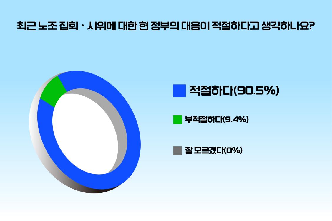 [폴 플러스] 참여자 10명 중 9명, 정부의 노조 집회∙시위 강경 대응 지지
