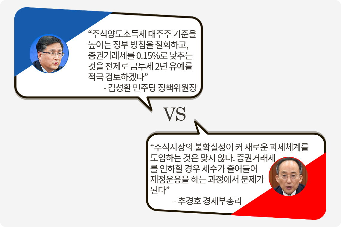 그러나 정부는 금투세 도입도 2년 유예하면서 증권거래세를 0.15%로 낮추는 것은 ‘시가상조’란