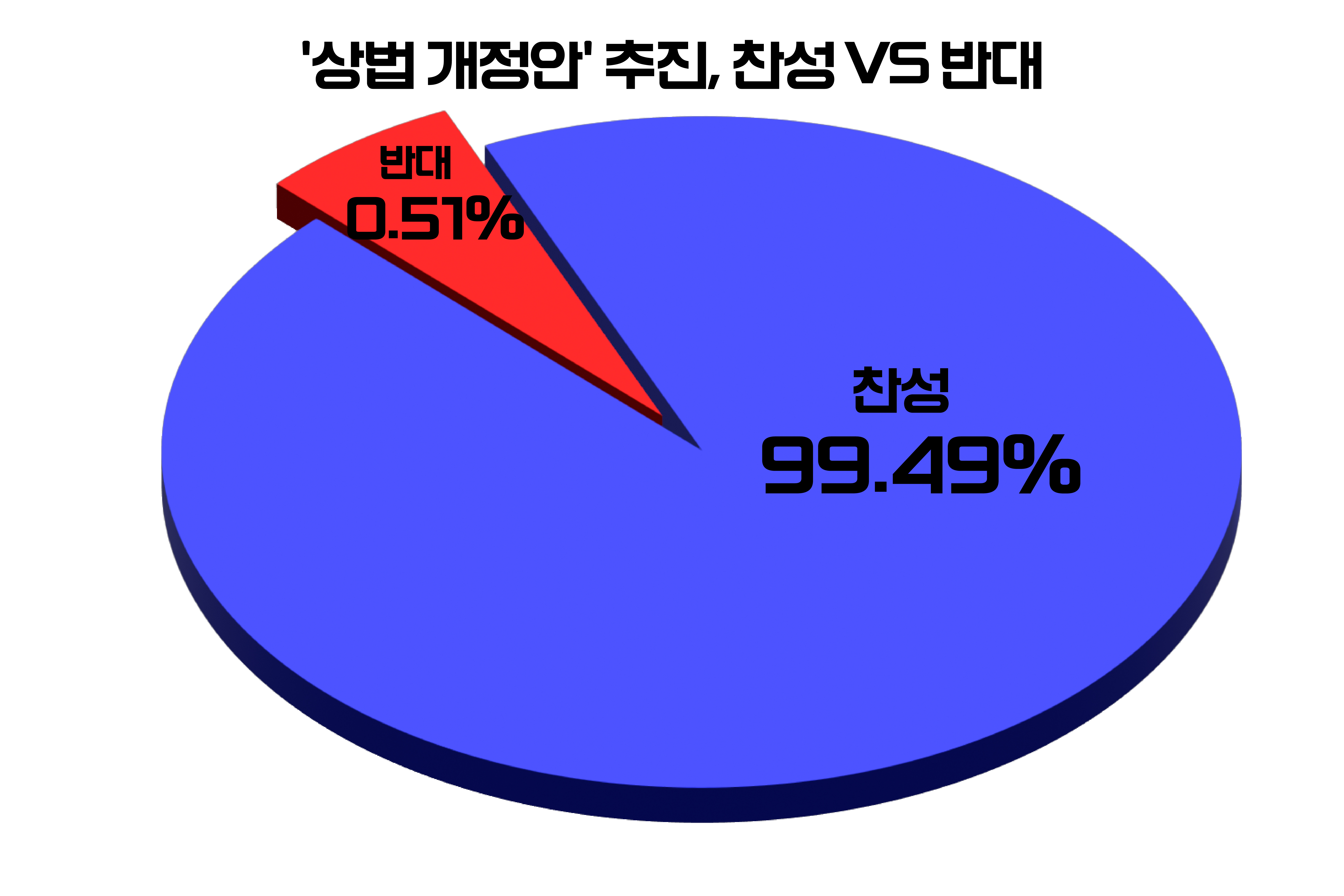 앞서 개인 투자자 이익을 보호하기 위한 ‘상법 개정안’은 야당인 더불어민주당이 당론으로 채택하고 연내 본회의에 상정하겠다고 밝히면서 뜨거운 감자로 급부상했다.