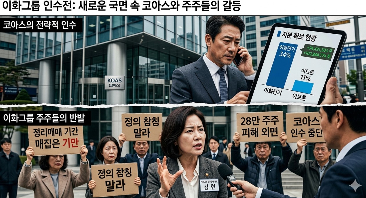 코아스의 이례적인 행보가 전략적 판단이라는 기대도 있지만, 정작 이번 인수전의 직접적 당사자인 이화그룹 주주들의 반응은 싸늘하다.