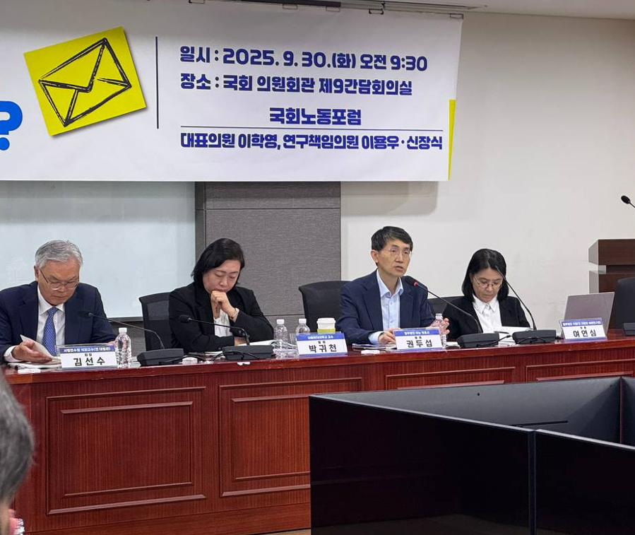 국회노동포럼은 지난 9월 30일 서울 여의도 국회의원회관에서 ‘노란봉투법 시행, 무엇을 준비해야 하는가?’를 주제로 토론회를 개최했다.