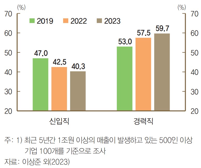 ▷경력직·수시채용 확산, 대기업 청년 비중 감소…‘높아진 문턱’이 만든 지연의 고리