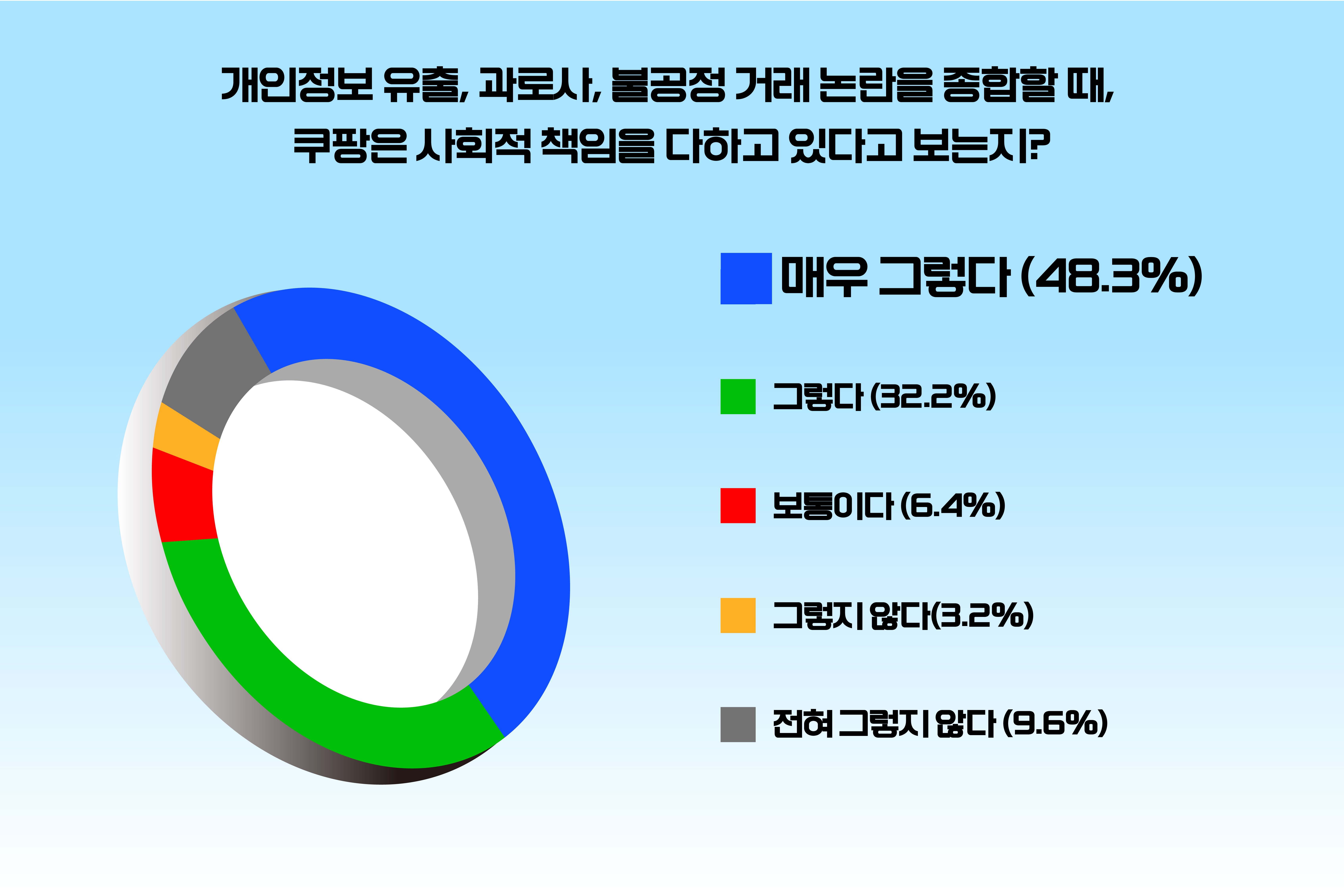[위즈경제] 이정원 기자 =3370만 명에 달하는 고객 개인정보 유출 사고로 촉발된 쿠팡 사태에 대해 대다수의 국민이 심각하다고 인식하고 있는 것으로 나타났다.