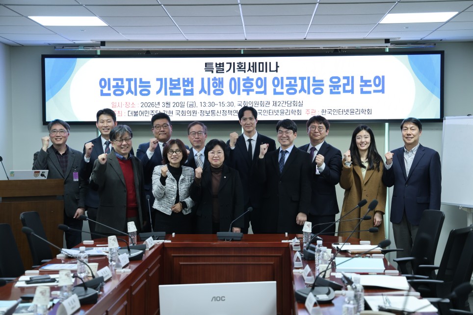 [위즈경제] 이정원 기자 =국회 과학기술정보방송통신위원회 간사인 김현 더불어민주당 의원은 정보통신정책연구원 및 한국인터넷윤리학회와 공동으로 '인공지능 기본법 시행 이후의 인공지능 윤리' 세미나를 성공적으로 개최했다고 20일 밝혔다.