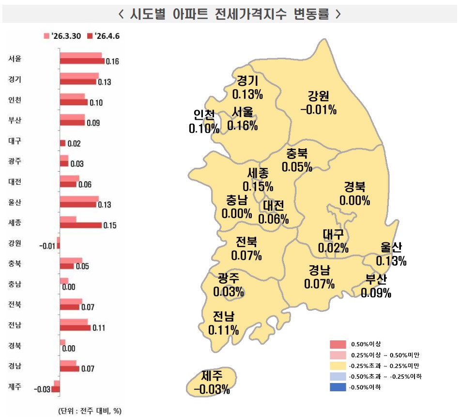 시도별 아프트 전세가격지수 변동률(그래픽=한국부동산원)
