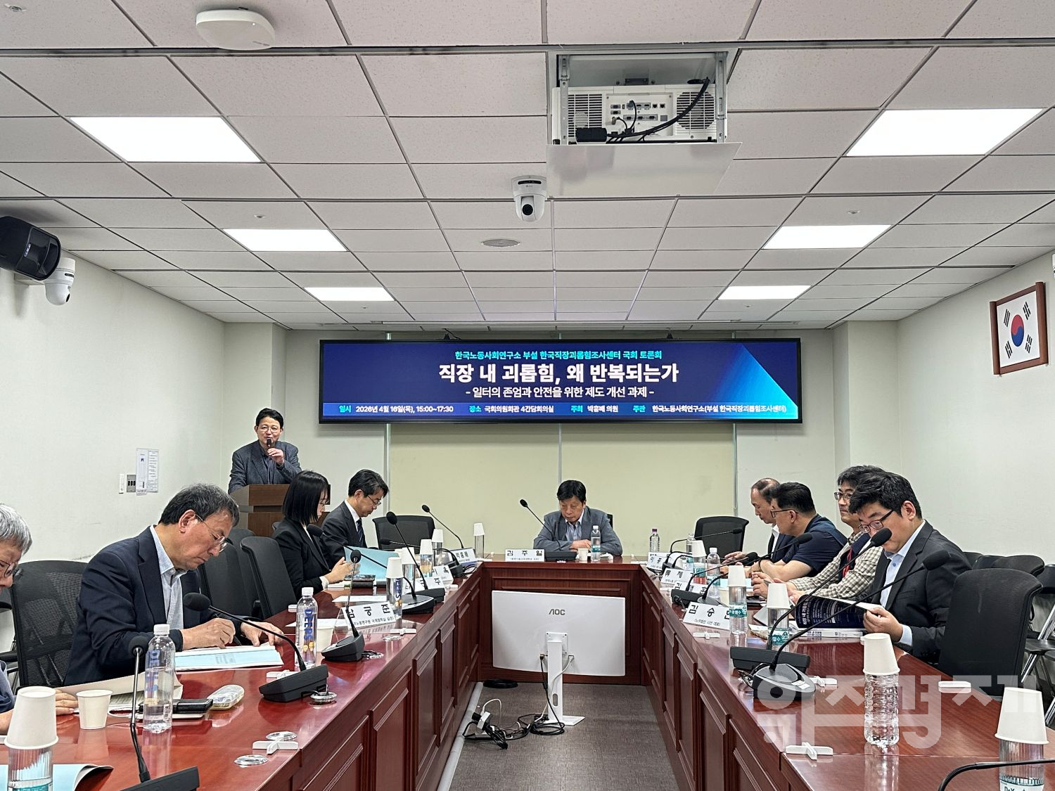 직장 내 괴롭힘 금지 제도 시행 7년차, 문제 여전…해결책은 16일 국회 의원회관에서 개최된 '직장 내 괴롭힘, 왜 반복되는가' 토론회(사진=위즈경제)