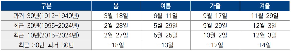 ▷전국 평균 매년 0.91일씩 빨라져…남부 지역일수록 변화 더 뚜렷
