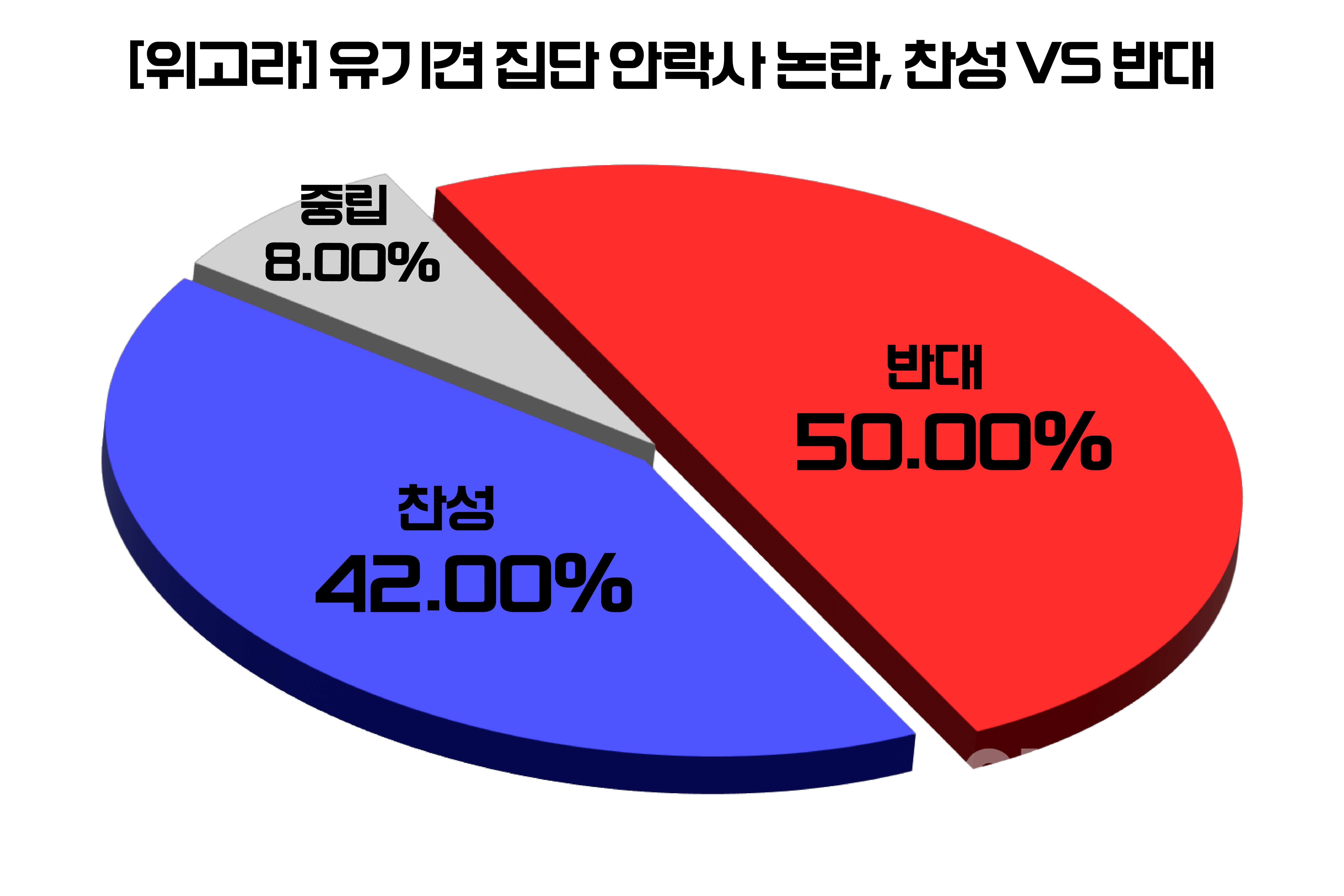 찬성 VS 반대’를 주제로 위고라를 진행한 결과, 이번 사건을 ‘인간에 의한 비윤리적 행위’로 보는 비율이 50.00%로 집계돼 부정적 시각이 강한 것으로 나타났다. 반면, 유기견의 무기한 보호는 현실적으로 어렵다는 찬성 측 입장은 42.00%였으며, 중립 의견은